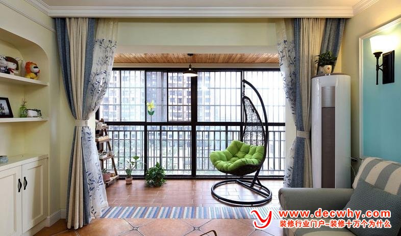 5、阳台上海menbetx娱乐公司巧用砖阳台顶部可相沿中国传统建筑中“吊梁”的工艺手法,做出两道红榉木的“假梁”。而墙壁采用外墙花砖,地面则采用色彩朴素的西班牙地砖。如许内外结合、深浅有致的规划,会使整个阳台的气氛与众不同。